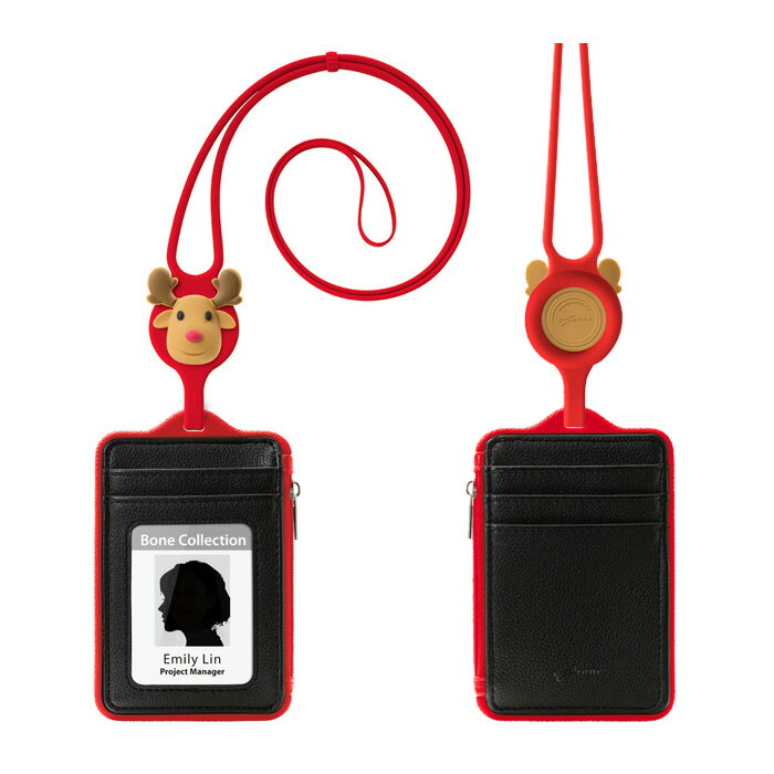 Bone IDカード ホルダー ネックストラップ 付 ウォレット 財布 小銭入れ かわいい キャラクター 名札入れ カードホルダー 長さ調節 ファスナー 付き パスケース 社員証 定期入れ 通勤 通学 コインケース Lanyard Wallet
