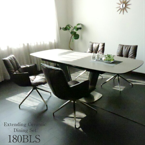 商品詳細サイズセット内容:テーブルx1台 チェアx4脚 (テーブル) 幅 180-220cm×奥行き 85cm×高さ73cm (チェア) 幅 59cm×奥行き 66cm×高さ85cm (座面まで45cm)材質イタリアンセラミックトップ/強化ガラス ステンレス レザーファブリック梱包サイズ・重量(テーブル) 3-1/天板:91.5×17×186 3-2/柱:64.5×28×95 3-3/ベース:56×5×100 (チェア) 1-1/(チェア2脚入り) :62×86×69組み立てについてお客様組み立て送料について■送料 送料無料。