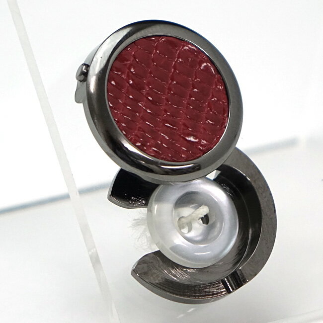商品番号 61M40150 サイズ 直径約1.8cm×D約0.6cm カラー レッド トカゲ型押し、ブラックニッケル 素 材 真鍮・ダイヤノシルバー 仕 様 このボタンカバーは新機構で作られております。