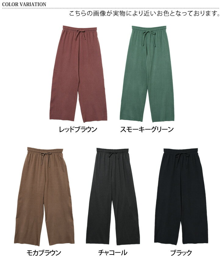 ドローストリングカットオフストレッチ微起毛ワイドパンツ レディース 秋冬 ボトムス ゆったり 大きめ ウエストゴム 無地 切りっぱなし ニット風 伸縮性 暖かい あったか ルームウェア セルフカット 低身長