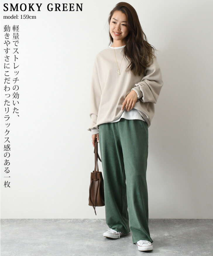 ●ふんわり起毛がかったニットのような肌触りで柔らかく暖かなワイドパンツ 軽量でストレッチの効いた、動きやすさにこだわったリラックス感のある一枚 落ち着きのあるカラーリングでシーズンムードを演出 ウエストゴム×ドロストデザインでお腹周りの窮屈感を軽減 ゆとりを持たせたサイジングで足のラインを拾わず体型カバーにも お好みの長さに合わせて裾カットok!切りっぱなしでもほつれにくい嬉しい仕上がりです ★