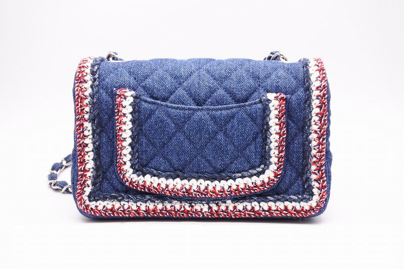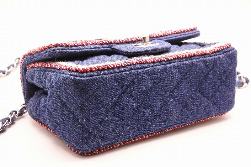 ◆[USED/美品]◆送料無料◆シャネル CHANEL:デニム×ツィードパイピング ミニマトラッセ シルバー金具 ギャランティ、シール有◆ 【RCP】【中古】◆